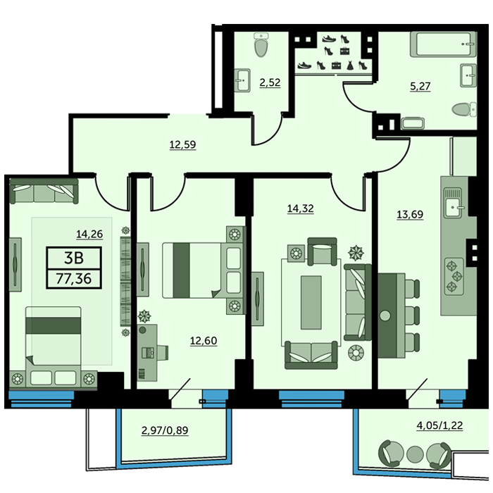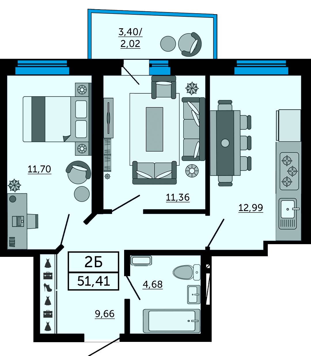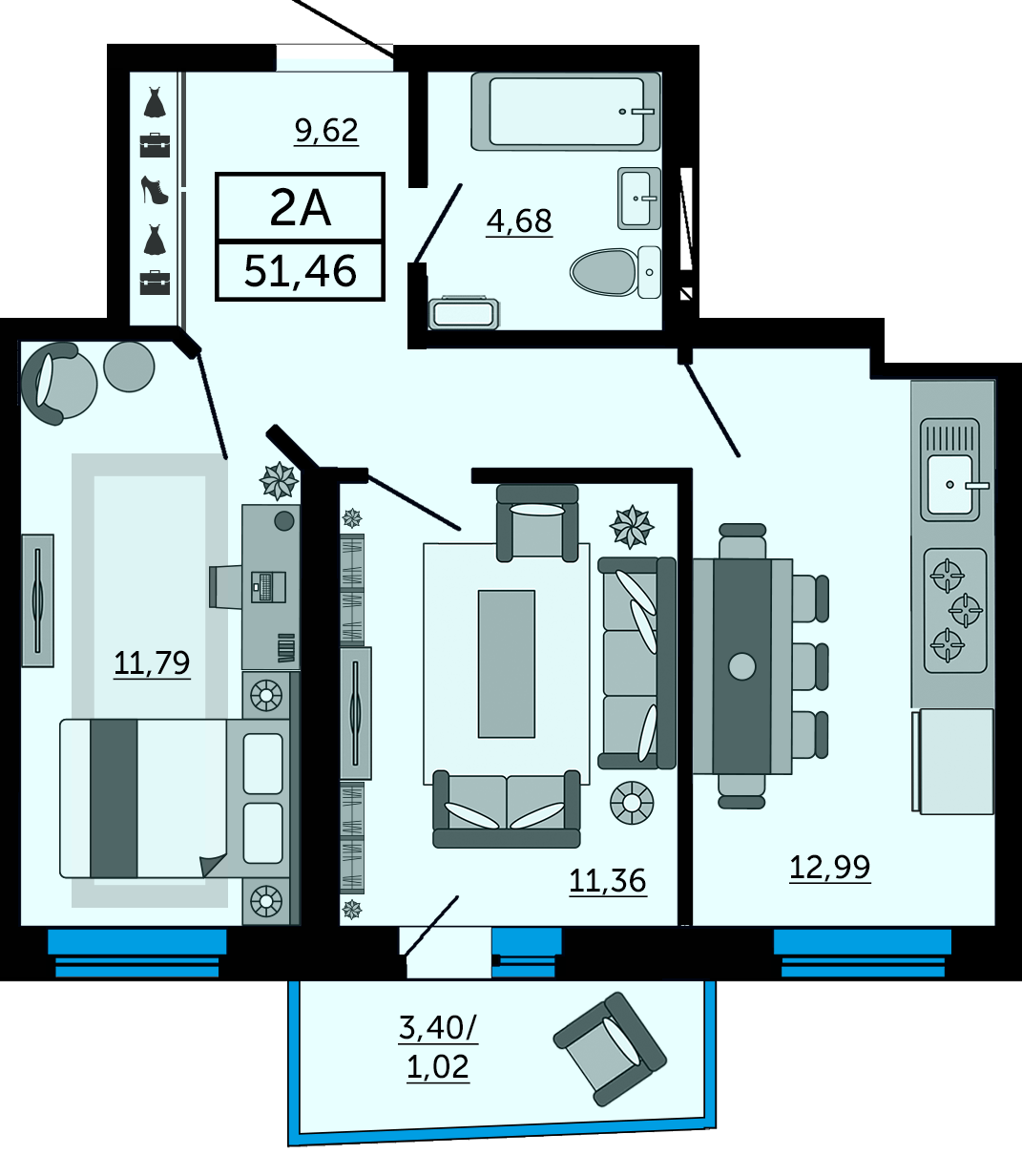 Комфортабельные квартиры c хорошей конфигурацией комнат. Чтобы квартиры были максимально функциональными, удобными для меблировки и зонирования, мы рассчитали правильный размер гардеробных, шкафов и дополнительных мест для хранения, учтя каждую деталь, чтобы всё было под рукой.