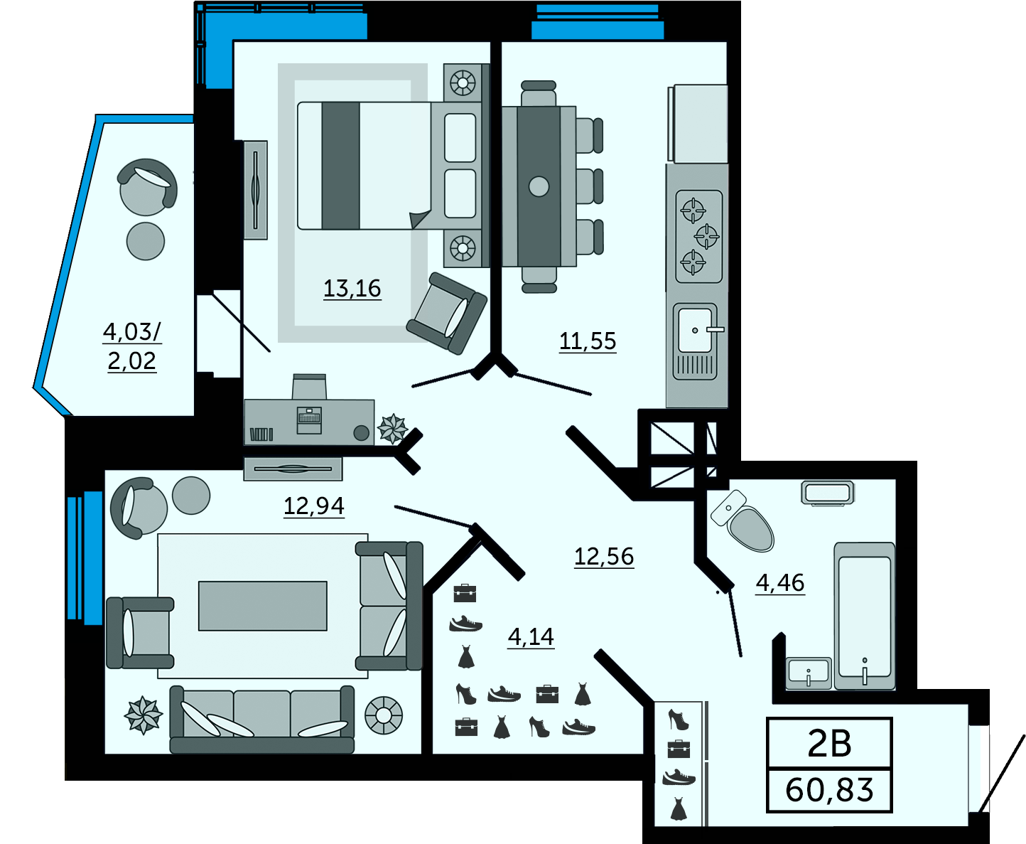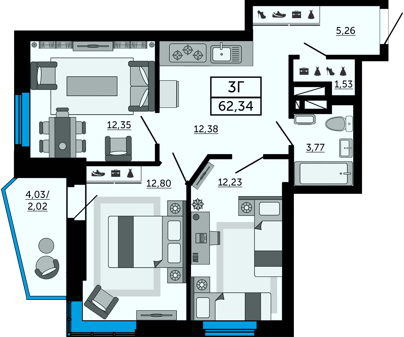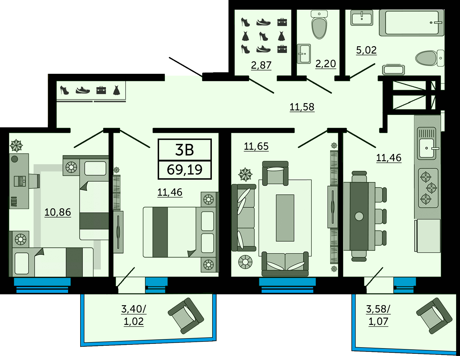 Комфортабельные квартиры c хорошей конфигурацией комнат. Чтобы квартиры были максимально функциональными, удобными для меблировки и зонирования, мы рассчитали правильный размер гардеробных, шкафов и дополнительных мест для хранения, учтя каждую деталь, чтобы всё было под рукой.